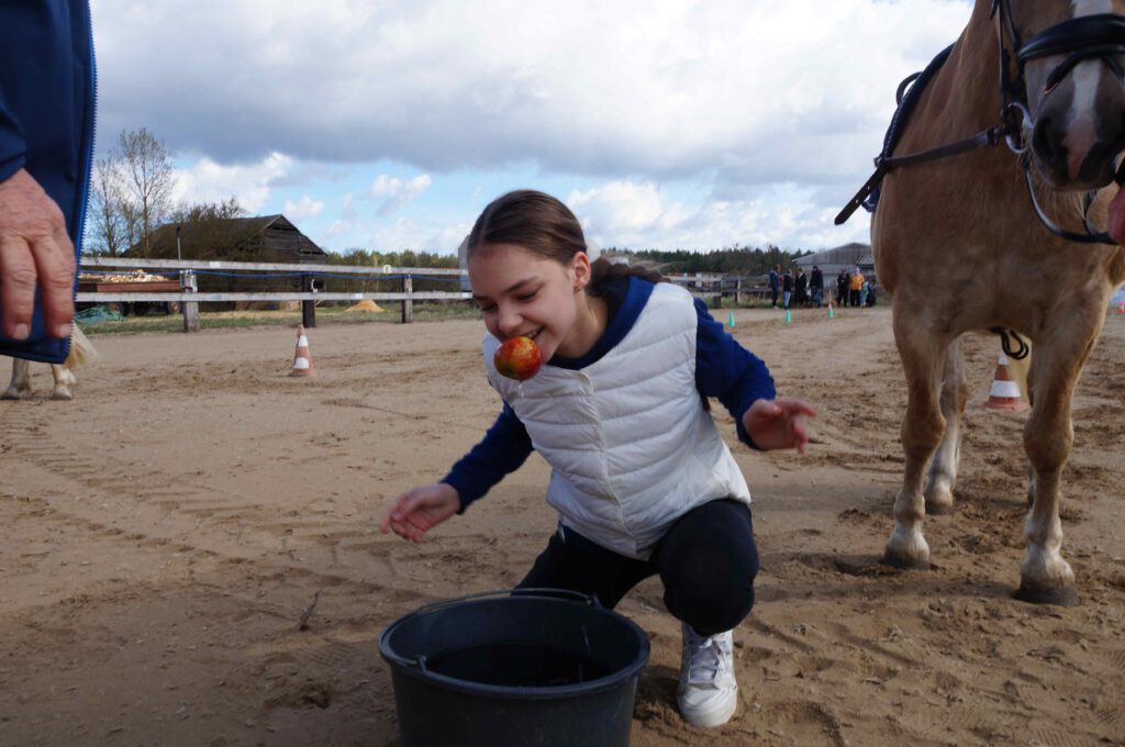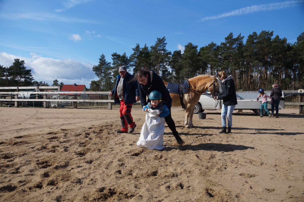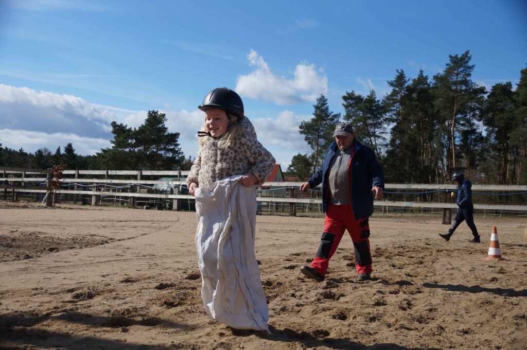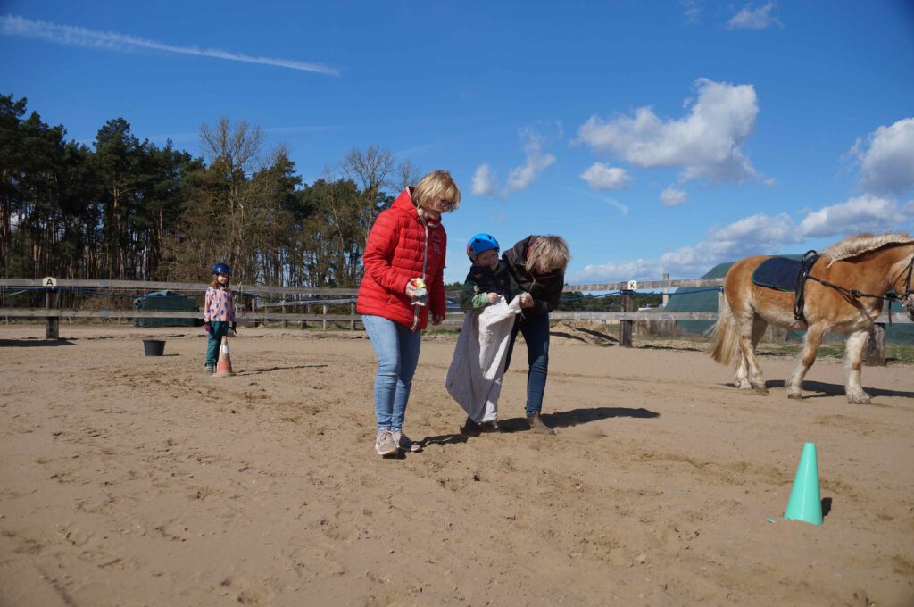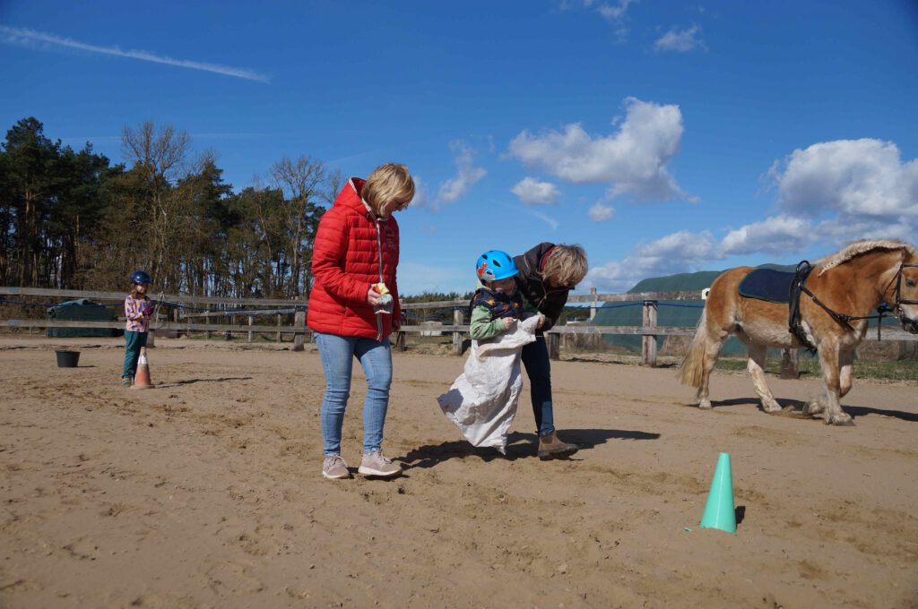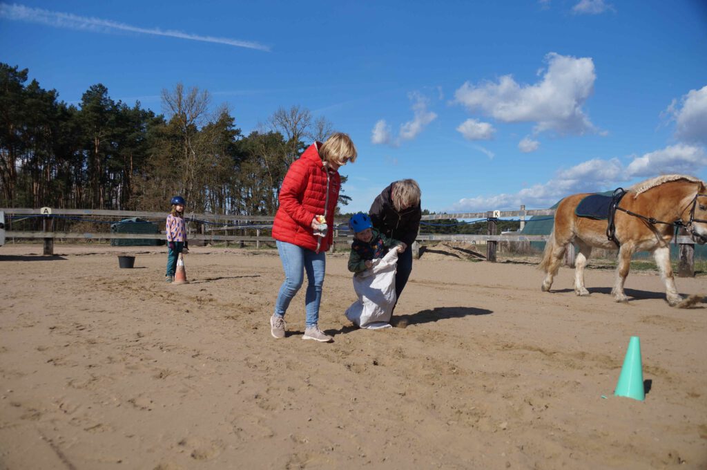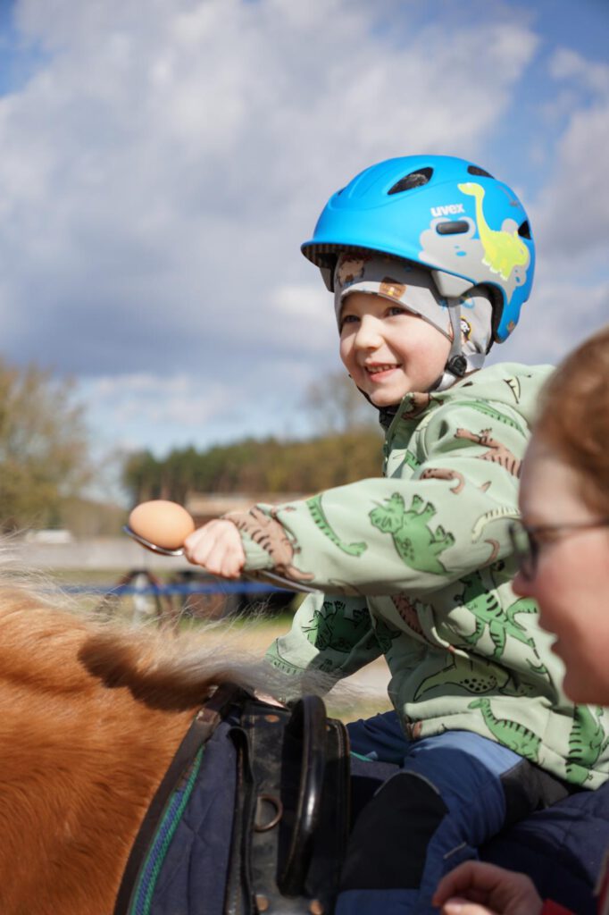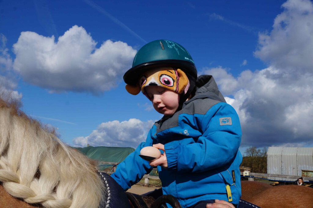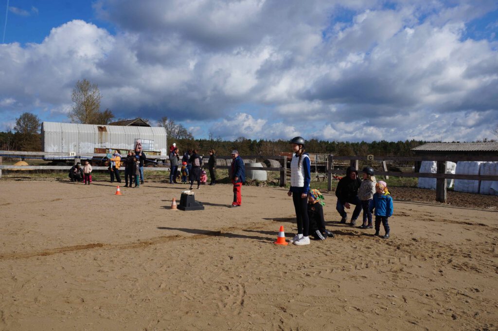 Traditionell gab es für den Reiternachwuchs am Ostersamstag Reiterspiele mit und um bunte Eier. Über Nachwuchsmangel können wir offensichtlich nicht klagen, haben doch die Vereinsmitglieder selber zahlreiche Kinder und Enkel. Im Slalom um Pylonen, Apfelfischen, Sackhüpfen, der Spaß kam bei Teilnehmern und Zuschauern nicht zu kurz. Petrus spielte auch mit und so konnten bei schönem Wetter anschließend die Überraschungseier gesucht werden. Bei Kaffee und Kuchen wurden dann Pläne für den Sommer geschmiedet und Erfahrungen ausgetauscht.