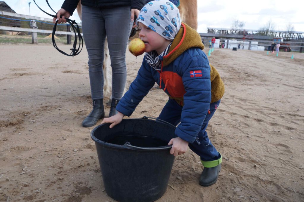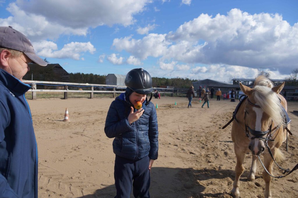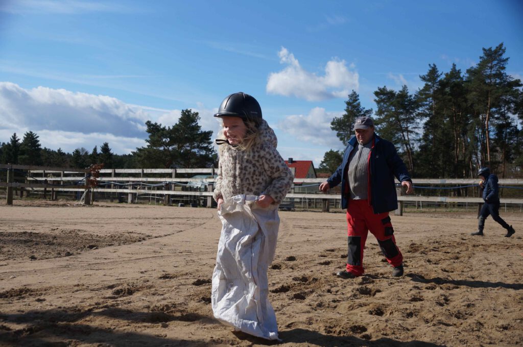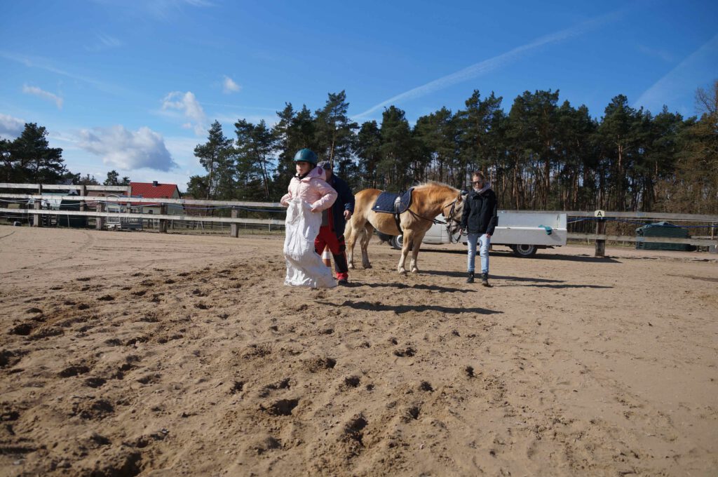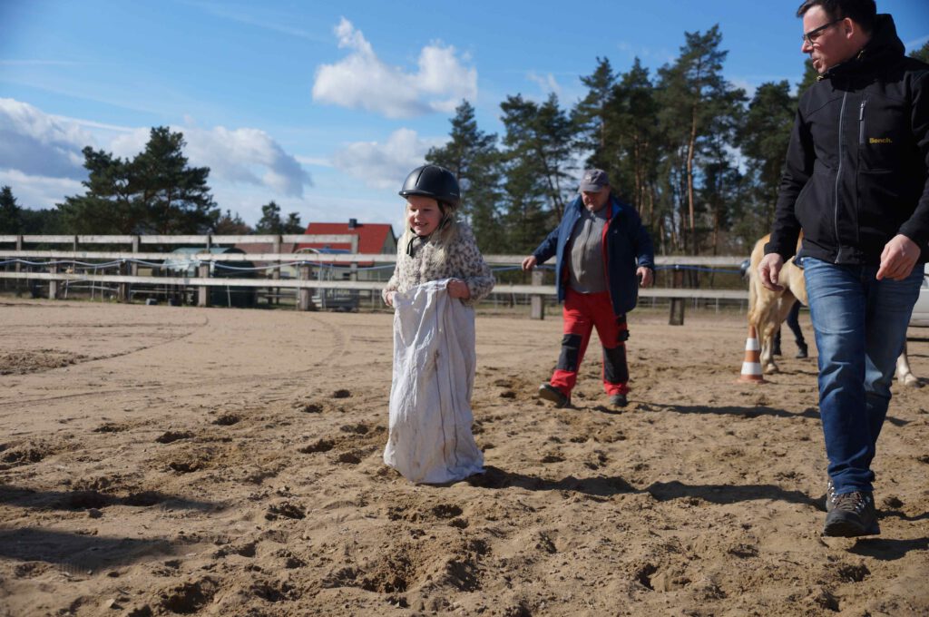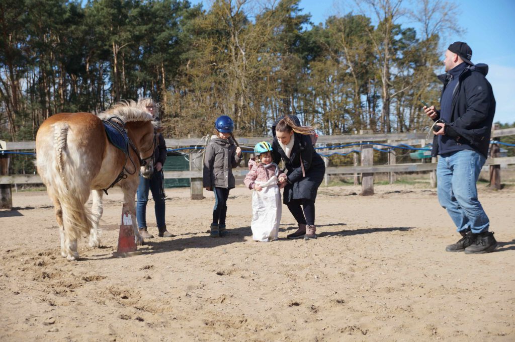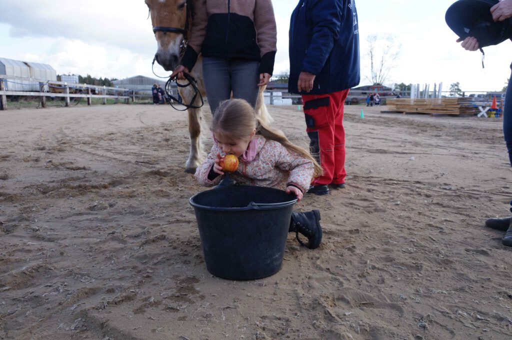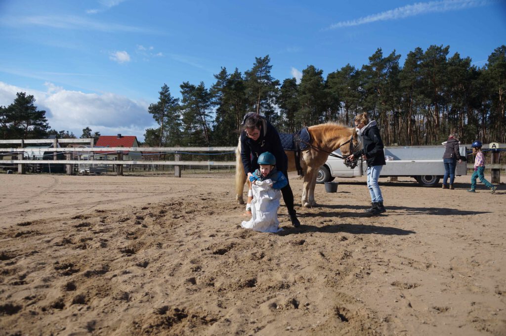 Traditionell gab es für den Reiternachwuchs am Ostersamstag Reiterspiele mit und um bunte Eier. Über Nachwuchsmangel können wir offensichtlich nicht klagen, haben doch die Vereinsmitglieder selber zahlreiche Kinder und Enkel. Im Slalom um Pylonen, Apfelfischen, Sackhüpfen, der Spaß kam bei Teilnehmern und Zuschauern nicht zu kurz. Petrus spielte auch mit und so konnten bei schönem Wetter anschließend die Überraschungseier gesucht werden. Bei Kaffee und Kuchen wurden dann Pläne für den Sommer geschmiedet und Erfahrungen ausgetauscht.