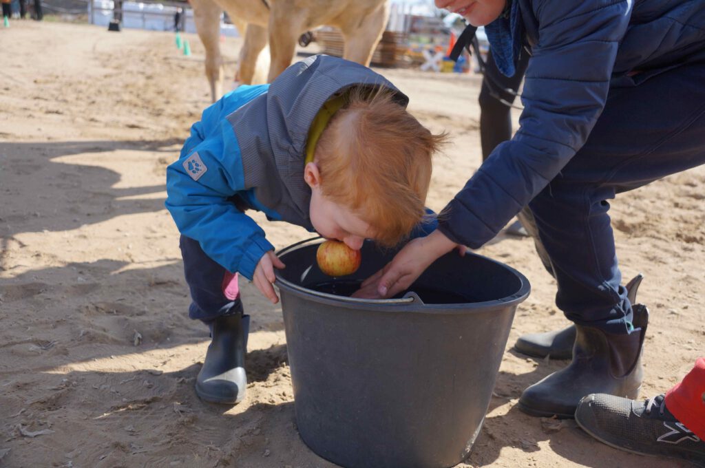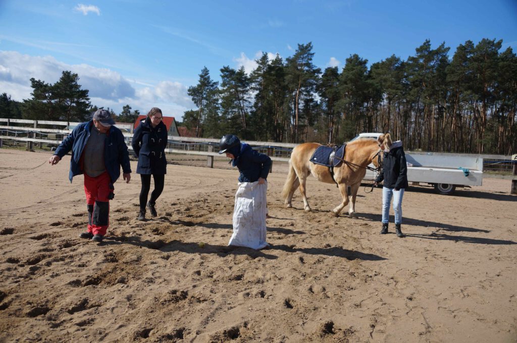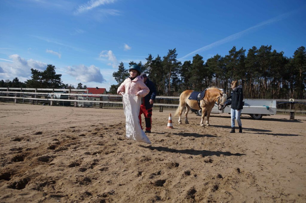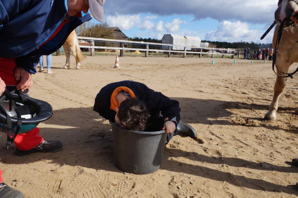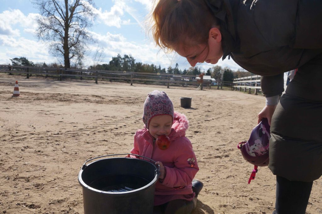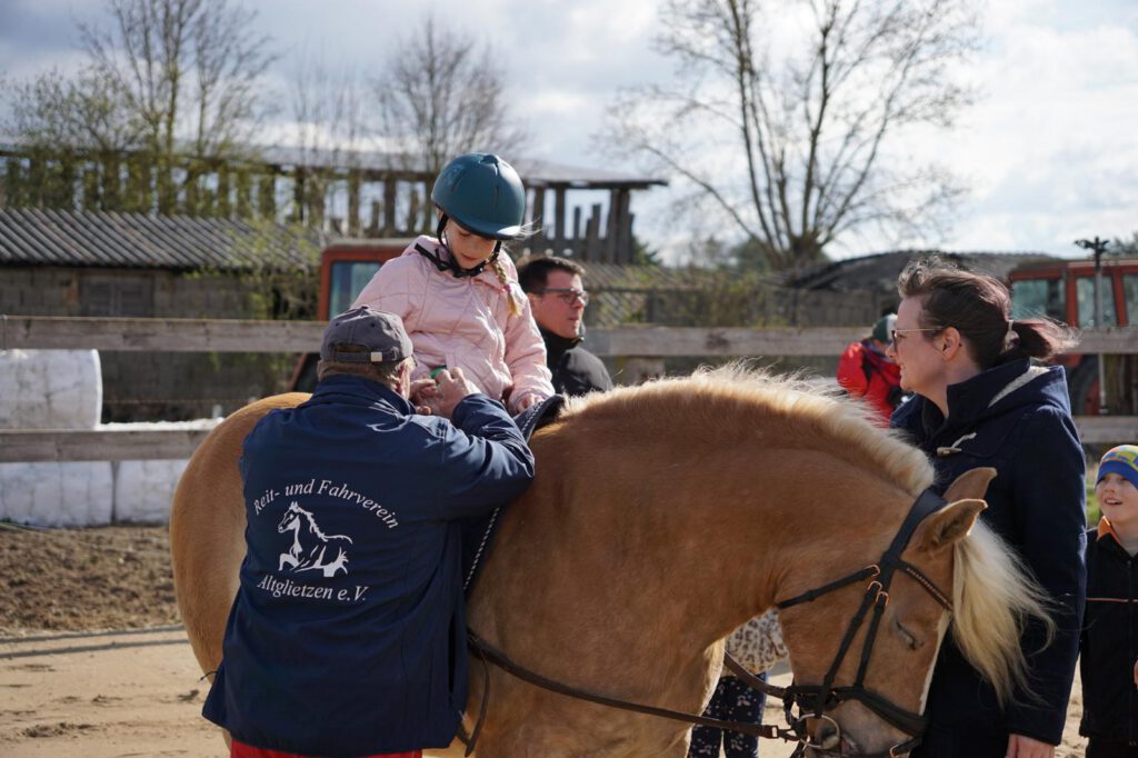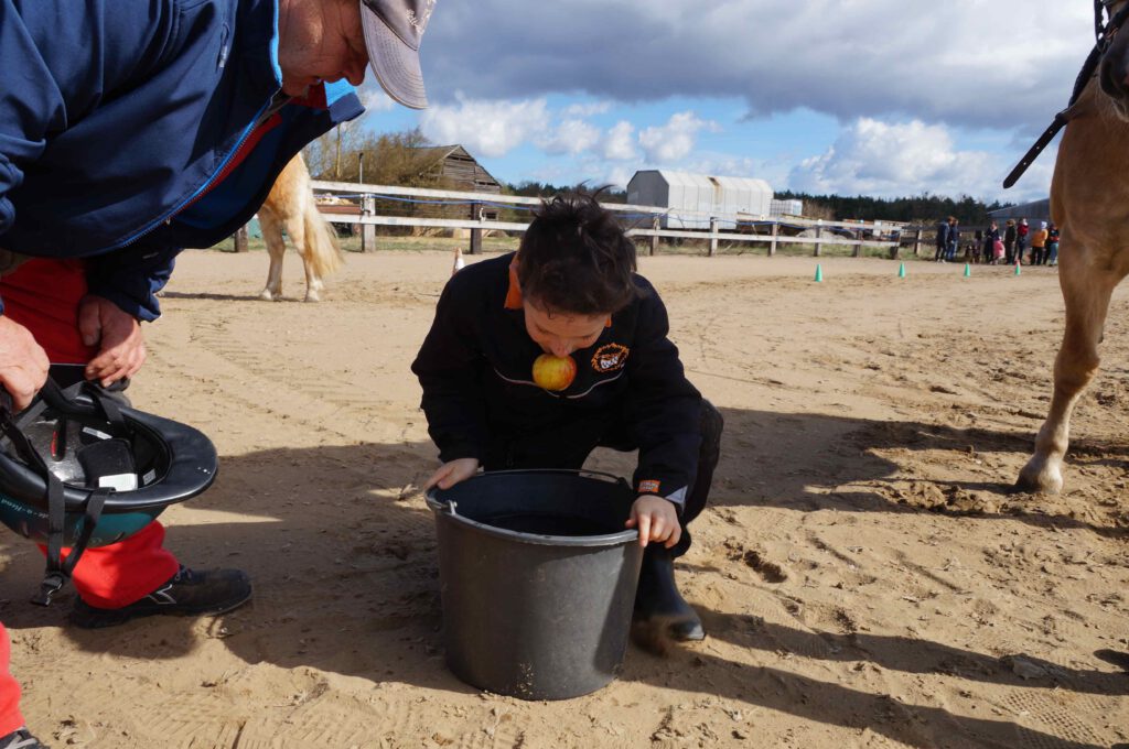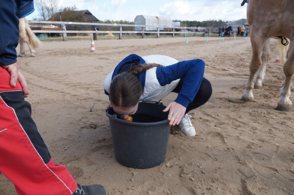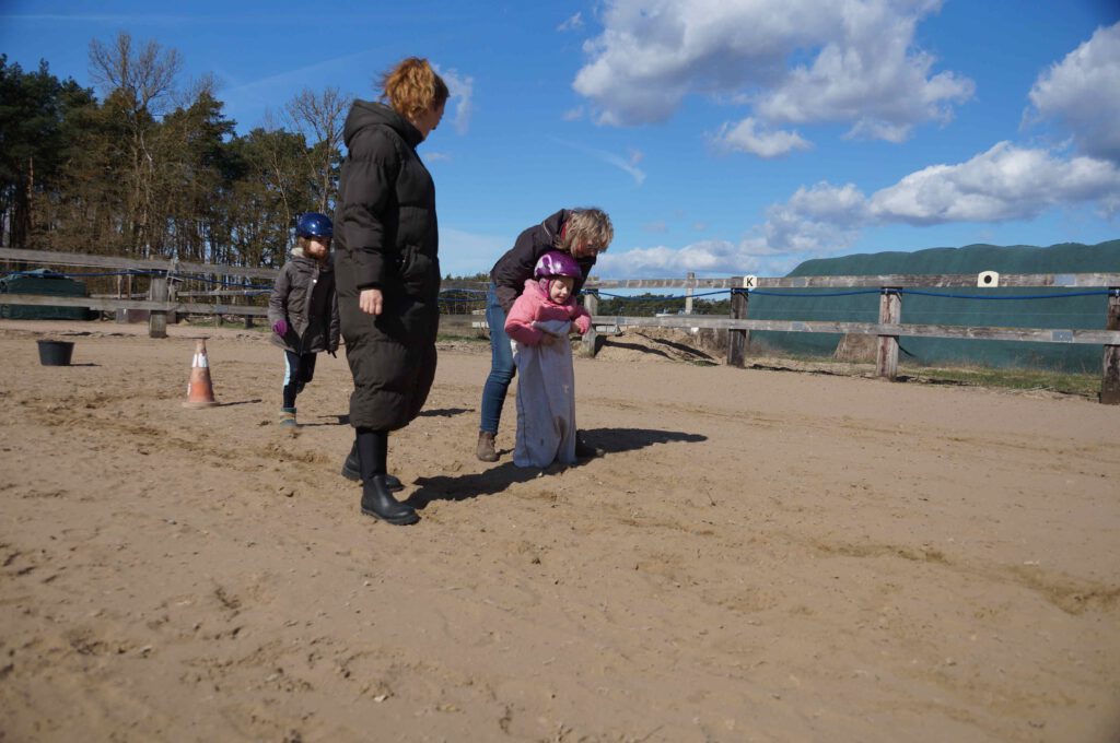 Traditionell gab es für den Reiternachwuchs am Ostersamstag Reiterspiele mit und um bunte Eier. Über Nachwuchsmangel können wir offensichtlich nicht klagen, haben doch die Vereinsmitglieder selber zahlreiche Kinder und Enkel. Im Slalom um Pylonen, Apfelfischen, Sackhüpfen, der Spaß kam bei Teilnehmern und Zuschauern nicht zu kurz. Petrus spielte auch mit und so konnten bei schönem Wetter anschließend die Überraschungseier gesucht werden. Bei Kaffee und Kuchen wurden dann Pläne für den Sommer geschmiedet und Erfahrungen ausgetauscht.
